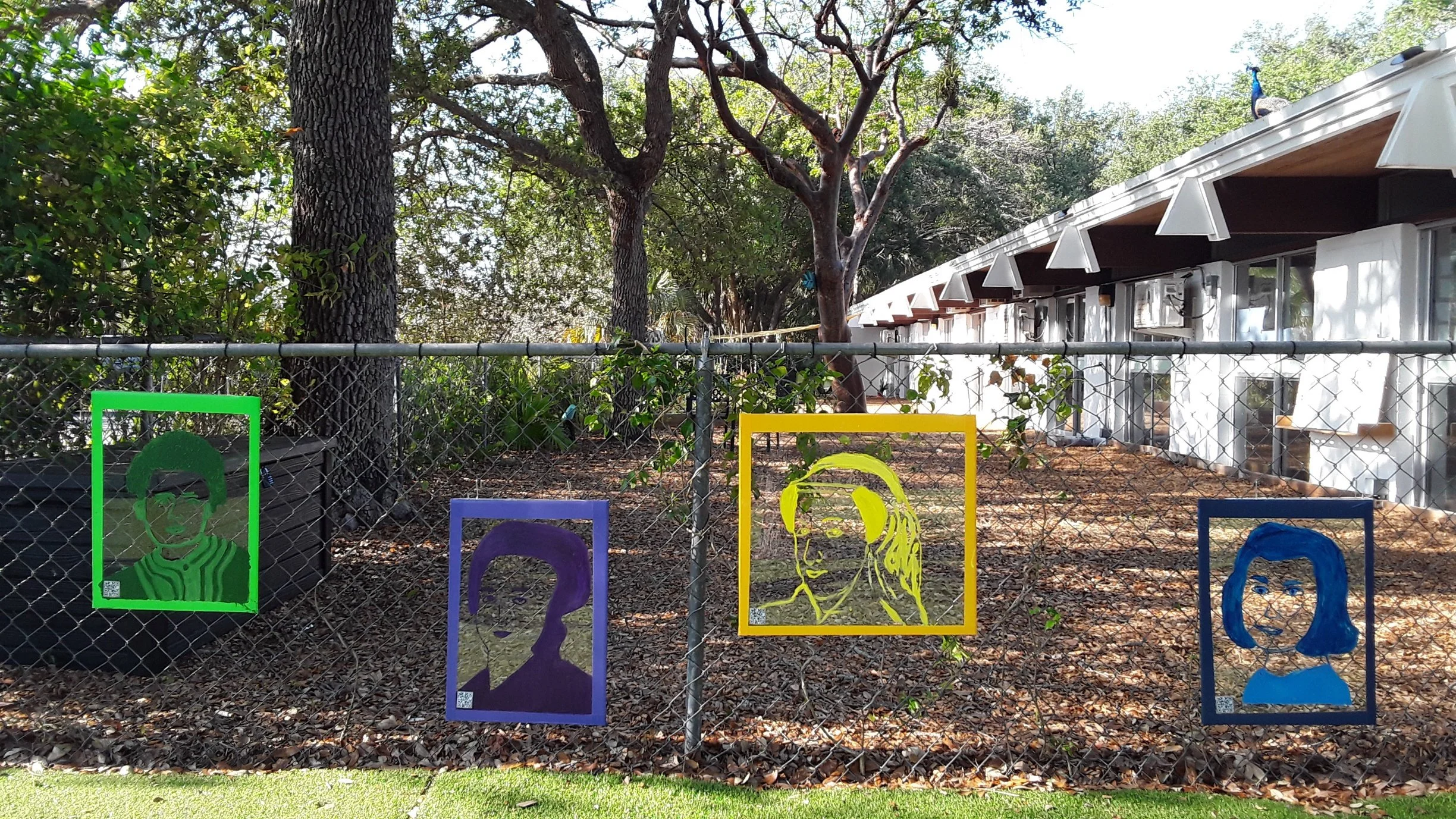 This research was reinvested in a project inspired by the Street Art, to create a temporary exhibit. The students made acrylic portraits on plexiglass boards (previously used in classes as part of the Covid protocol). The artworks were exhibited around school last week.